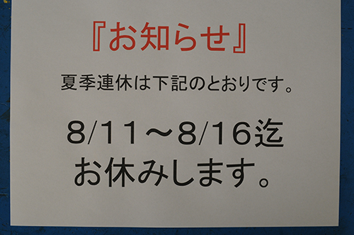 夏季連休 お知らせ