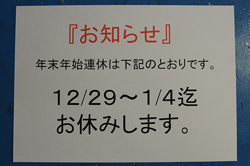 1月17日はお店の新年会なので休業いたします